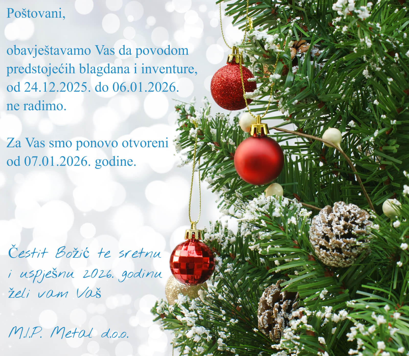 obavještavamo Vas da zbog predstojećih blagdana i godišnje inventure nećemo raditi od 24. prosinca 2025. do 6. siječnja 2026.